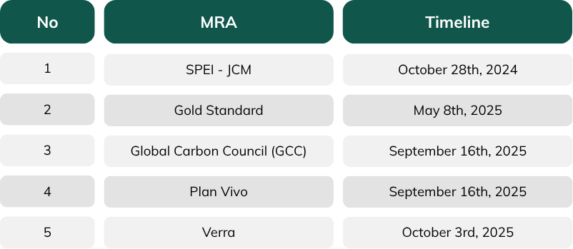 Before the establishment of the Mutual Recognition Agreement (MRA), carbon projects verified under international standards such as Verra, Gold Standard, GCC, or Plan Vivo were not automatically recognized in Indonesia’s National Registry System for Climate Change Control (SRN-PPI). This meant that project developers who wanted to sell carbon credits nationally or apply for an SPEI (Greenhouse Gas Emission Reduction Certificate) had to go through a re-registration and re-verification process in accordance with national regulations. This situation often led to the risk of double-counting, slowed down access to international markets, and made the due diligence process for foreign buyers more complex, as they had to check the status of carbon credits in various registries and under different standards.